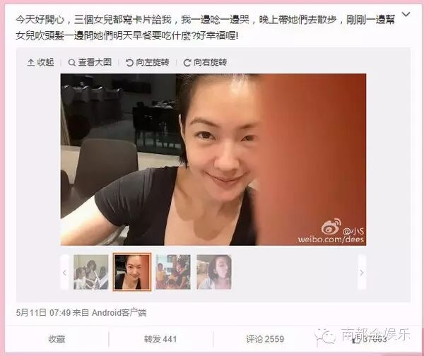 但是在去年12月29日,她還發了一條微博說“要開始使用右臉了,一直都用左臉做表情,右臉都僵了!”