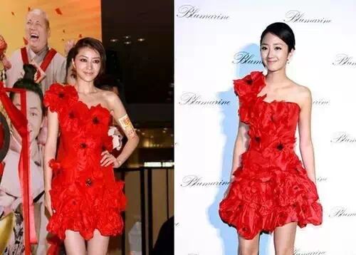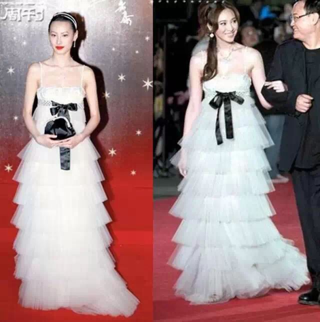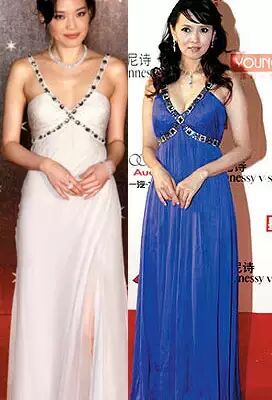 這套禮服,舒淇完勝了。伊能靜敗在了顏色和髮型。不過,和舒淇PK,基本佔下風的多,最好還是不要撞衫啦。