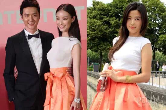 乍一看,右邊的這位以為是湯唯,其實是一個韓國女星。趙薇大姐配的那條項鏈,相當low啊,頓時鄉村風撲面而來。