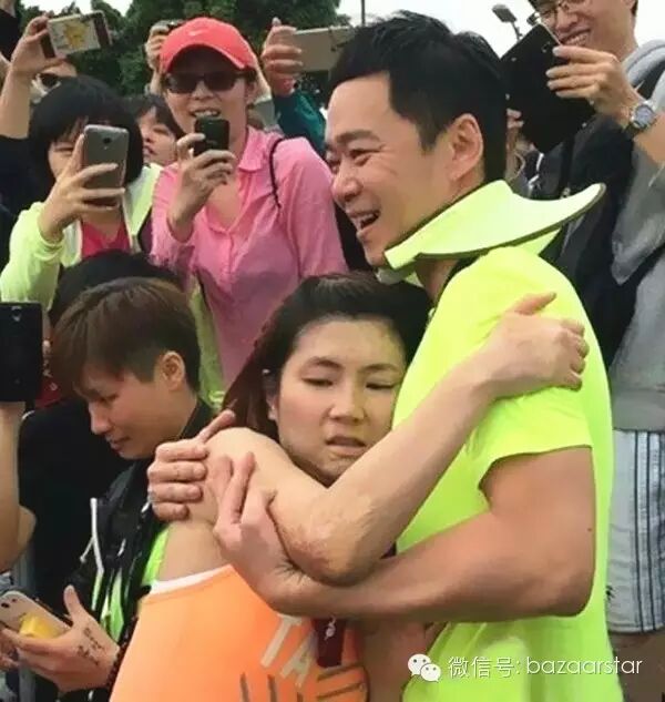 Selina正式開跑當天,張承中也在現場默默陪著她。當她跑到終點時,她直接撲到了早早在終點等候的老公懷裡。他就是她的依靠。