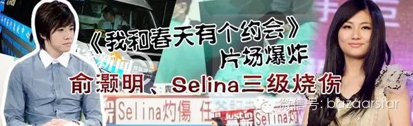 2010年,Selina和俞灝明拍《我和春天有個約會》時,在一場爆破戲中發生意外,當場,俞灝明的衣服被炸成條狀,Selina旗袍下襬全部燒沒,慘哭不止。