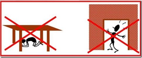 大樓倒塌時,被發現很多人在門口死亡!這是怎麼回事?如你站在門框下,當門框向前或向後倒下時,你會被頭頂上的屋頂砸傷。如門框向側面倒下,你會被壓在當中,所以,不管怎麼樣,你都會受到致命傷害!