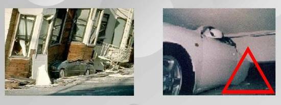 ◣地震時,在車內的人會被路邊墜落的物體砸傷,這正是Nimitz Freeway路上所發生的事情。San Francisco地震無辜受害者都是呆在車內。其實,他們可簡單地離開車輛,靠近車輛坐下,或躺在車邊就可以了。所有被壓垮的車輛旁邊都有一個3英呎高的空間,除非車輛是被物體垂直落下。