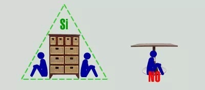 簡單地說,當建築物倒塌落在物體或傢俱上的屋頂重力會撞擊到這些物體,使得靠近它們的地方留下一個空間。這個空間就是被我稱作的「救命三角」。物體越大,越堅固,它被擠壓的餘地就越小。而物體被擠壓得越小,這個空間就越大,於是利用這個空間的人免於受傷的可能性就越大。