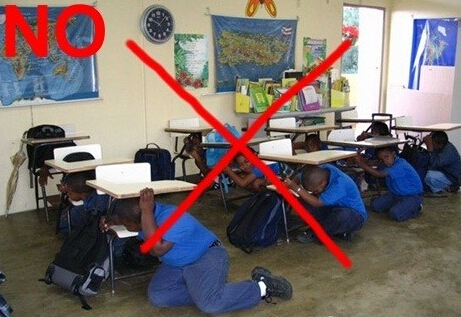 我曾進入的第一個建築物是在1985年墨西哥地震中的一個學校。每個孩子都在課桌底下。每個孩子都被壓扁了。他們如能挨著課桌的走道里躺下,就有生還的希望。我不知道孩子們怎麼會被誤導要躲在某物體的下面。
