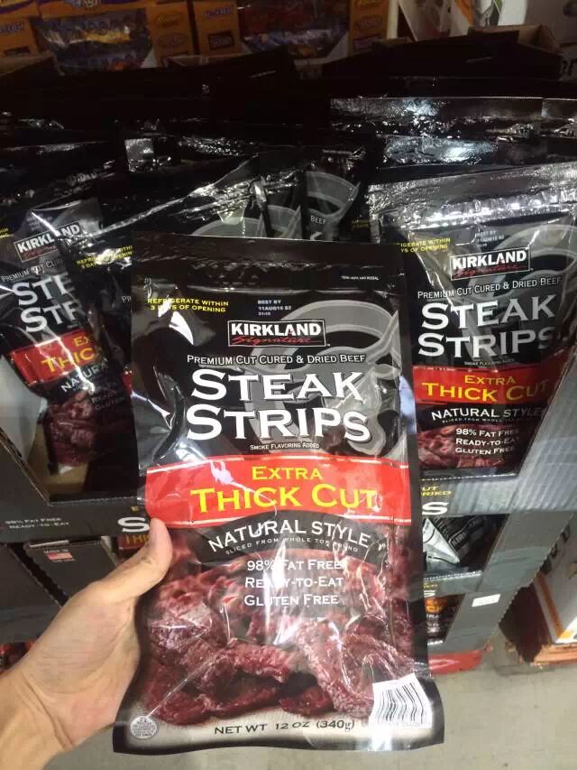 costco自產品牌牛肉乾中的「王中王」,全部採用上好牛排製作的牛肉乾,叫「干」其實不干,咬一咬汁香濃哦。家庭裝送禮自家吃,兩相宜。