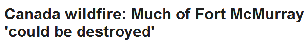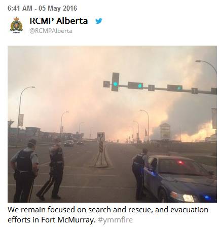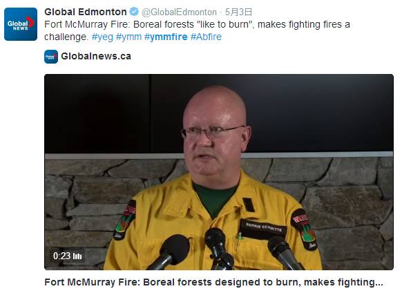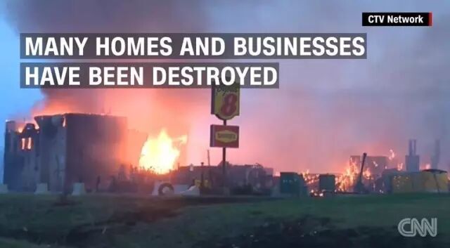 阿爾伯塔省長Rachel Notley在新聞發佈會上宣佈:"5月3日是'毀滅性的一天',麥克默裡堡的山火已失控,大火已經燒到了城市中心地帶。消防人員被野火的速度和力量壓倒了。「