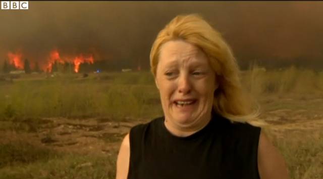 BC省列治文華裔市民李女士說,她的母親移民麥梅利堡已33年,當週二接到疏散通知時,大火已燒近她母親住的公寓。濃煙令她雙眼流淚,在好心人的幫助下才能以逃離火海。